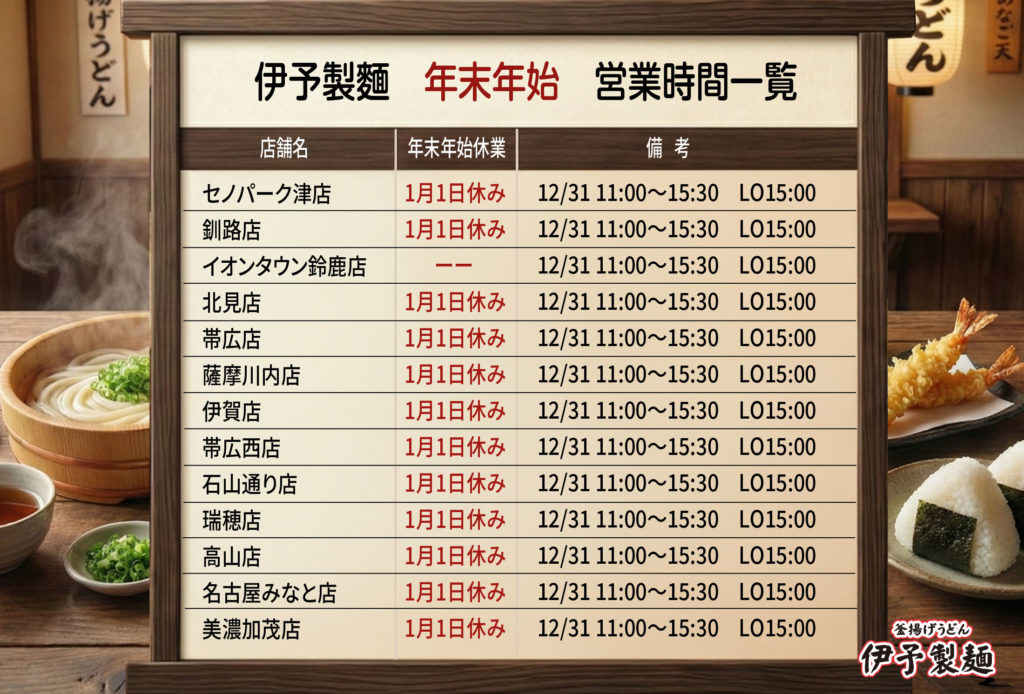 12月29日より、伊予製麺の各店舗で季節限定の味わいをお楽しみいただけます。当店自慢の滑らかなうどんに添えるも良し、香ばしい丼にトッピングするも良し、サクサクの海老天ぷらの至福をご提供いたします。
